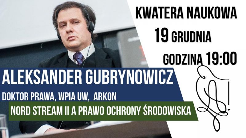 Na grudniowym spotkaniu półotwartym mieliśmy przyjemność wysłuchać wykładu kolejnego naszego filistra, dr hab. Aleksandra Gubrynowicza (cetus 1994). Filister, będąc uznanym specjalistą w dziedzinie prawa międzynarodowego publicznego oraz prawa ochrony środowiska, omówił kwestię budowy linii gazociągu tzw. Nord Stream II na tle przepisów europejskich traktujących o ochronie środowiska. Dowiedzieliśmy się, państwa Unii Europejskiej mają różne punkty widzenia w sprawie obowiązywania trzeciego pakietu energetycznego na dnie Morza Bałtyckiego. Inwestycja Nord Stream II dzieje się w luce prawnej, wobec którego UE nie może wypracować wspólnego stanowiska. Budowa gazociągu napotyka np. opór ze strony Danii, której parlament przyjął ustawę pozwalająca na zablokowanie budowy Nord Stream II na duńskich wodach terytorialnych. Alternatywna trasa gazociągu biegnie przez tereny Natura 2000, co powoduje sprzeciw ekologów oraz rządu szwedzkiego i duńskiego, ponieważ może to stanowić komplikacje w szlaku komunikacyjnym pomiędzy Bornholmem a Szwecją. Po wspólnej dyskusji doszliśmy do wniosku, że Nord Stream II zostanie najprawdopodobniej ukończony z opóźnieniem oraz większymi kosztami, pomimo sprzeciwów wielu środowisk ekologicznych oraz politycznych.