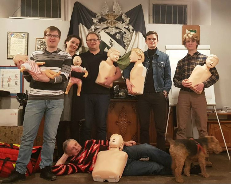 W sobotę Wiceprezes Wewnętrzny, kol. Maciej Saczywko (cetus 2013), - ratownik medyczny oraz przedsiębiorca zorganizował kurs pierwszej pomocy przedmedycznej. Podczas kursu uzyskaliśmy niezbędne informacje oraz umiejętności potrzebne przy ratowaniu życia lub zdrowia. Prelegent podkreślił, że przy udzielaniu pierwszej pomocy najważniejsze jest własne bezpieczeństwo oraz bezpieczeństwo osoby potrzebującej pomocy. Mieliśmy okazję poćwiczyć resustytacje krążeniowo-oddechową na fantomie dorosłego człowieka, dziecka, niemowlęcia. Dowiedzieliśmy się jak używać automatycznego defibrylatora zewnętrznego (AED), a ponadto usłyszeliśmy sposoby na radzenie sobie z zagrożeniami dnia codziennego.