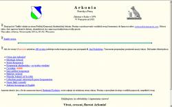 Pierwsza strona internetowa Arkonii powstała w czasach, gdy szacowni dziś filistrzy byli obiecującymi fuksami, a Internet w Polsce stawiał pierwsze śmielsze kroki. Bartłomiej Kachniarz (c.1995) napisał kilka ciekawych tekstów, opatrzył je grafikami (256-kolorów!) i całość tłumaczoną na antyczną werjsję języka HTML zawiesił na zaprzyjaźnionym serwerze.